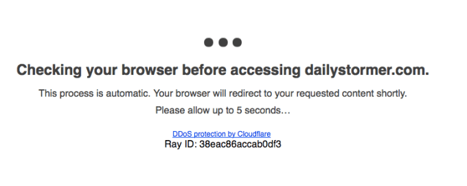 However a third company, Cloudflare, a provider of website security services including bolstering defenses against denial of service attacks and masking the identity of a site’s domain provider, is apparently continuing to provide DDoS protection services to The Daily Stormer.