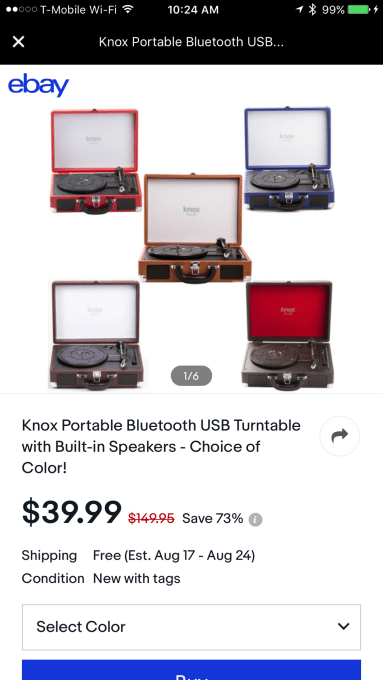 For the time being, transaction revenue is not being shared between eBay and Facebook. Instead, users who click on a deal will be linked over to the eBay website within the Facebook app, where they can view more product details, and complete their purchase.