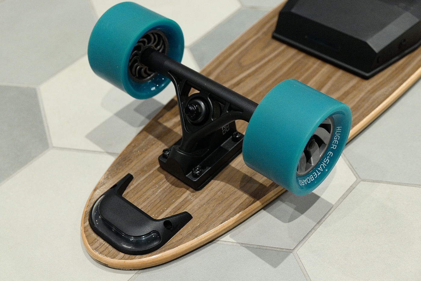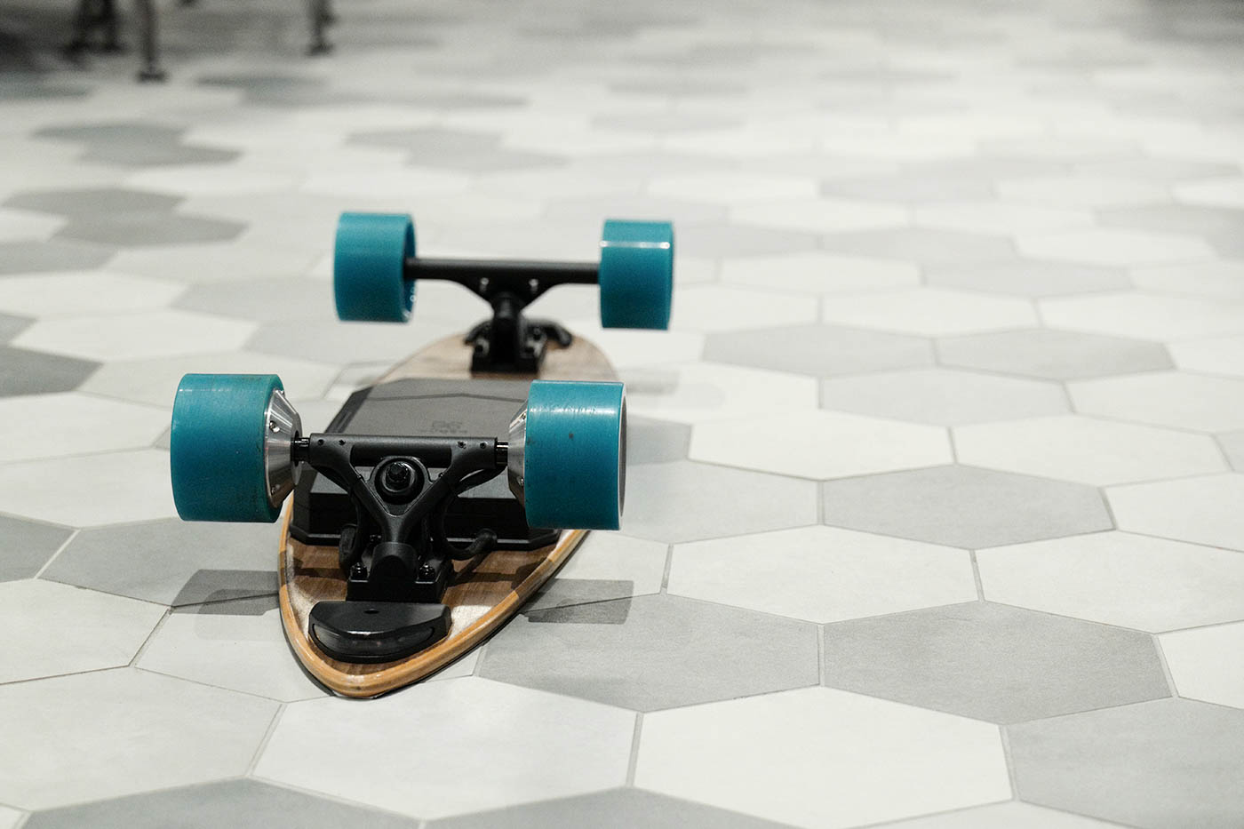 The model I’ve been testing is pre-production, with only a few differences from the final production models: better grip tape on the board’s standing surface and bolted down wires on the undercarriage.