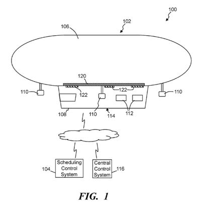 The patent application, first noted in Bloomberg, shows the Walmart blimp would float about 500 to 1,000 feet in the air and contain multiple launching bays from which both human controlled and autonomous drones could fly out to make deliveries.