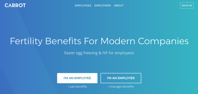 Carrot Fertility wants to bring fertility benefits to company health plans so that employers cover fertility procedures like IVF or egg-freezing just like they do for vision or dental. Though big tech companies like Apple, Facebook and Google are already offering fertility benefits to employees, other companies that aren’t so flush with cash may not have the ability to be seeking out the best path towards adding this coverage. Carrot Fertility makes it easier for companies to add the service to health plans, helping them keep their list of benefits attractive to potential new hires.