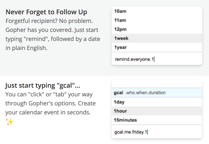 We all hate email, but still spend most of our day there. Gopher wants to make that time more productive by letting any developer build apps for your inbox. For example, you can forward it emails of data for entry into Salesforce, or collaboration plans to schedule a meeting. Its first extension for sending follow-up emails has earned it 13,00 monthly users, and 300 devs have signed up to build on the platform. Rather than forcing you to waste your hours hopping back and forth between email and other apps, Gopher will help you get things done all in one place.