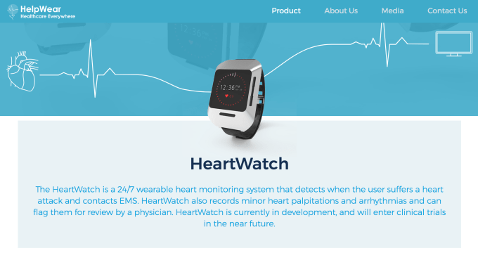 For the 17 million Americans suffering from acute heart conditions, HelpWear is building a more versatile ECG system that patients can . Existing systems are uncomfortable amalgams of wires and adhesives and can only be worn for 72 hours and have to be taken off before hopping in the shower, something that can be a major inconvenience to those suffering from acute heart conditions. HelpWear’s solution is a much more svelte system of three wearable units akin to fitness trackers which are wireless and can be worn 24/7 and are waterproof. The startup is on track to be FDA-approved in nine months.