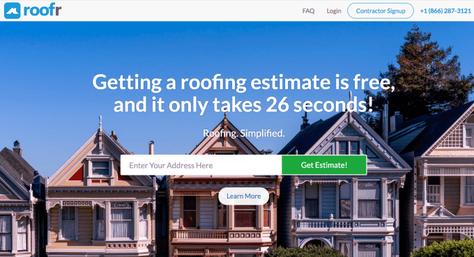 Roofr uses satellite imagery to let consumers easily grab a quote on the cost of their roof and then get connected with roofers to tackle repairs. Property owners can easily set their address, trace an image of their home’s roof on a satellite map and within 30 seconds they get an estimate and can get connected with a roofing installer within 72 hours. The startup takes a 10 percent fee for the process and says they’re saving their customers save about 20 percent.