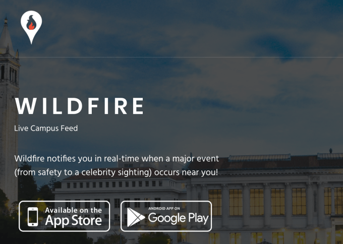 Wildfire seems to be a bit of mixture of Yik Yak and Patch, bringing local user-submitted news and campus alerts that are tolerated though not officially approved by university adminstrations. The app’s initial draw is as a system to send out campus safety warning notification pushes so students are alerted if there’s a robbery or active shooter situation on campus. In the less dire, day-to-day use cases, the app is a “hyperlocal news app” allowing users to share what’s happening on campus whether it’s an extracurricular event or party. Wildfire says it has 23 thousand MAUs across six college campuses and will be available in 50 campuses by the end of the year.