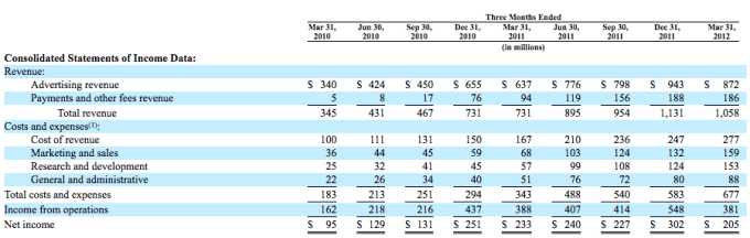 For our work today, we will employ Facebook’s final S-1/A document. It includes the company’s Q1 2012 results that were unfinished in its earlier filings.