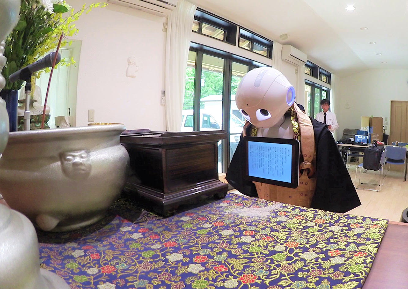 According to the Japan Times, “Kanagawa-based Nissei Eco Co. will offer Pepper — billed as the world’s first robot that can read emotions — to chant Buddhist sutras at funerals, providing a cheaper alternative to human priests.”