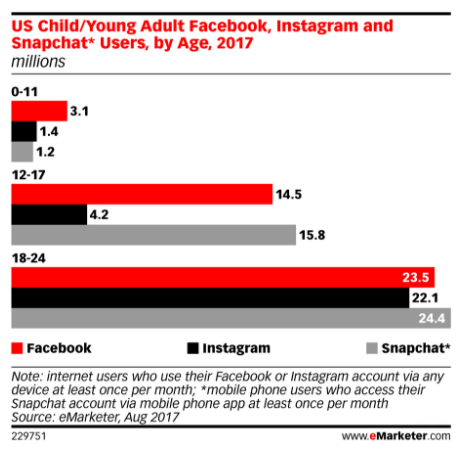 “Both platforms have found success with this demographic since they are more aligned with how they communicate — using visual content,” noted eMarketer forecasting analyst Oscar Orozco in a statement.
