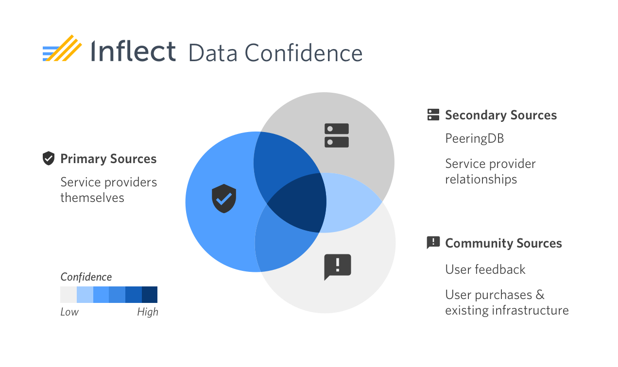 Traditionally, it has been hard to find detailed (and pricing) information about networking and co-location providers. Data and telco are typically bought through a very old-school sales process and the process isn’t always very transparent. Inflect, which has raised about $2 million in seed money, wants to bring this process into the 21st century. It gathers its own data from providers and from the PeeringDB database, the de facto standard for network peering information. Inflect takes the PeeringDB data and then runs it through its own validation process (and any changes are shared back to PeeringDB).