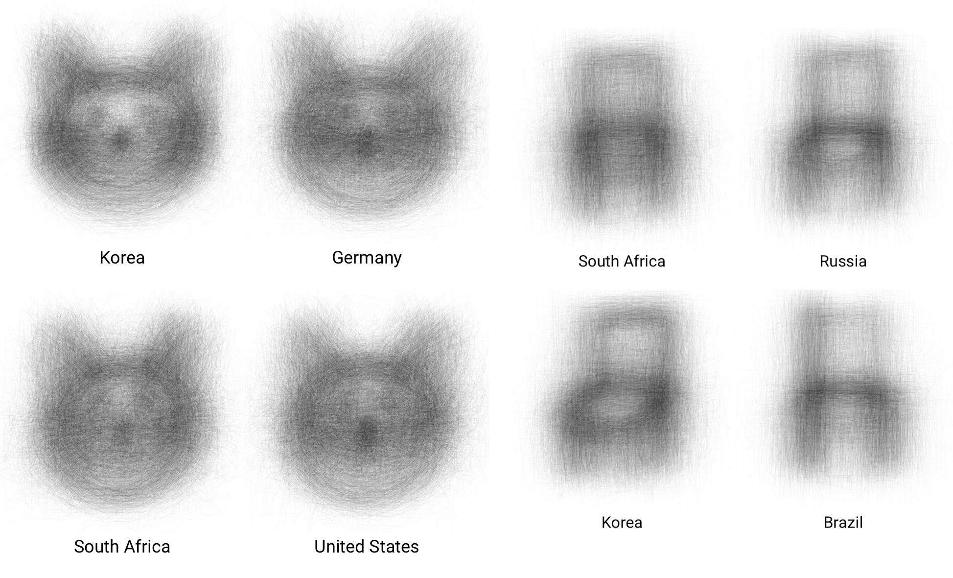 Well look, there are patterns in there worth sussing out. Clearly Korean and Russian sketchers were more likely to draw the chair at an angle or sideways. Why? That’s what you’re supposed to find out with your machine learning system!