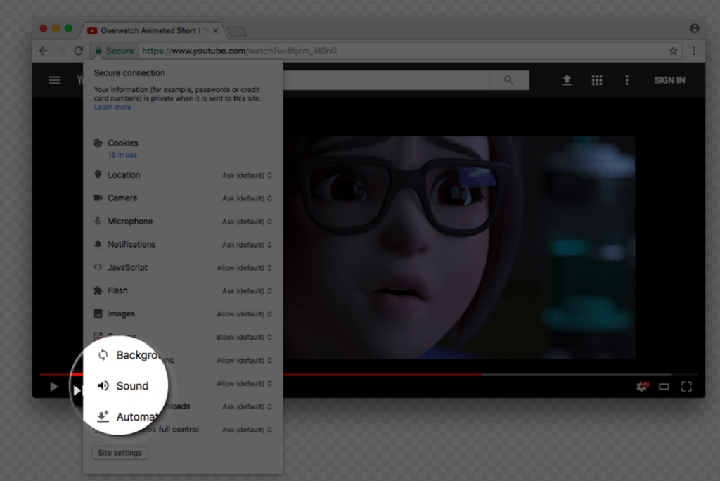 It looks very easy to use. Just click on the security status that’s located to the left of the website address, and then the option to mute the site sits within the list of its details and permissions. The mute itself lasts until the setting is changed, which effectively makes it a sound ban.