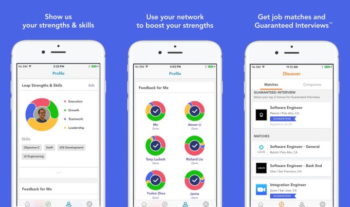 From there, the system matches job seekers with its clientele of companies that are looking to hire, including Dropbox, Uber and others. By asking candidates to name the two companies they aspire to work for, Leap.ai believes it can guarantee an interview with at least one, particularly when they are startups and not huge corporates like Google.