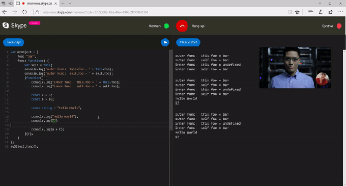 That’s often how these things go today – users have two different apps running at the same time, Skype for the call and a code editor. Skype Interviews instead lets you actually have the video call still displayed on top of the code editor in either Microsoft Edge or the Google Chrome (ver. 32+) web browser window. That way, the interviewer can provide the instructions and feedback as the candidate performs the tests.