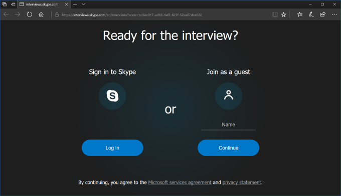Instead, the interviewer just visits the Skype Interviews website and clicks “Start Interview” to begin. This will provide them with a unique link they can share however they see fit. Candidates can then click the link, and choose to sign into Skype or join as a guest after entering their name.