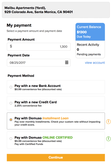 The concept for Domuso is straightforward – there are certain life events that sometimes get in the way of paying rent – like losing your job or getting an unexpected big medical bill. When this happens, tenants using the platform can request an installment loan to spread this missed month out over 6 or 12 months, instead of getting hit with huge late fees. Approvals take less than 30 seconds, and the property manager receives the money just like they would from a regular rent payment.