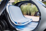 Smart describes a 1-to-1 sharing method, too, whereby the panels can be used to trigger discovery of nearby users looking for a ride, and flag them down. Paired with the electric battery onboard, which is only 30kWH but designed such that the vehicle would be able to charge consistently on its own between trips at power stations and inductive charging docks, it sounds like the perfect city sharing car.