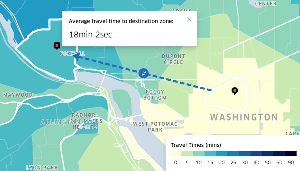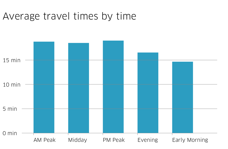 For now the data is only available for a handful of cities, including Bogotá, Boston, Manila, Sydney and Washington, D.C. From within the available web app you can explore average travel times between any two neighborhoods. The map data comes with accompanying charts that display helpful facts, like travel times broken down by time of day and day of the week.