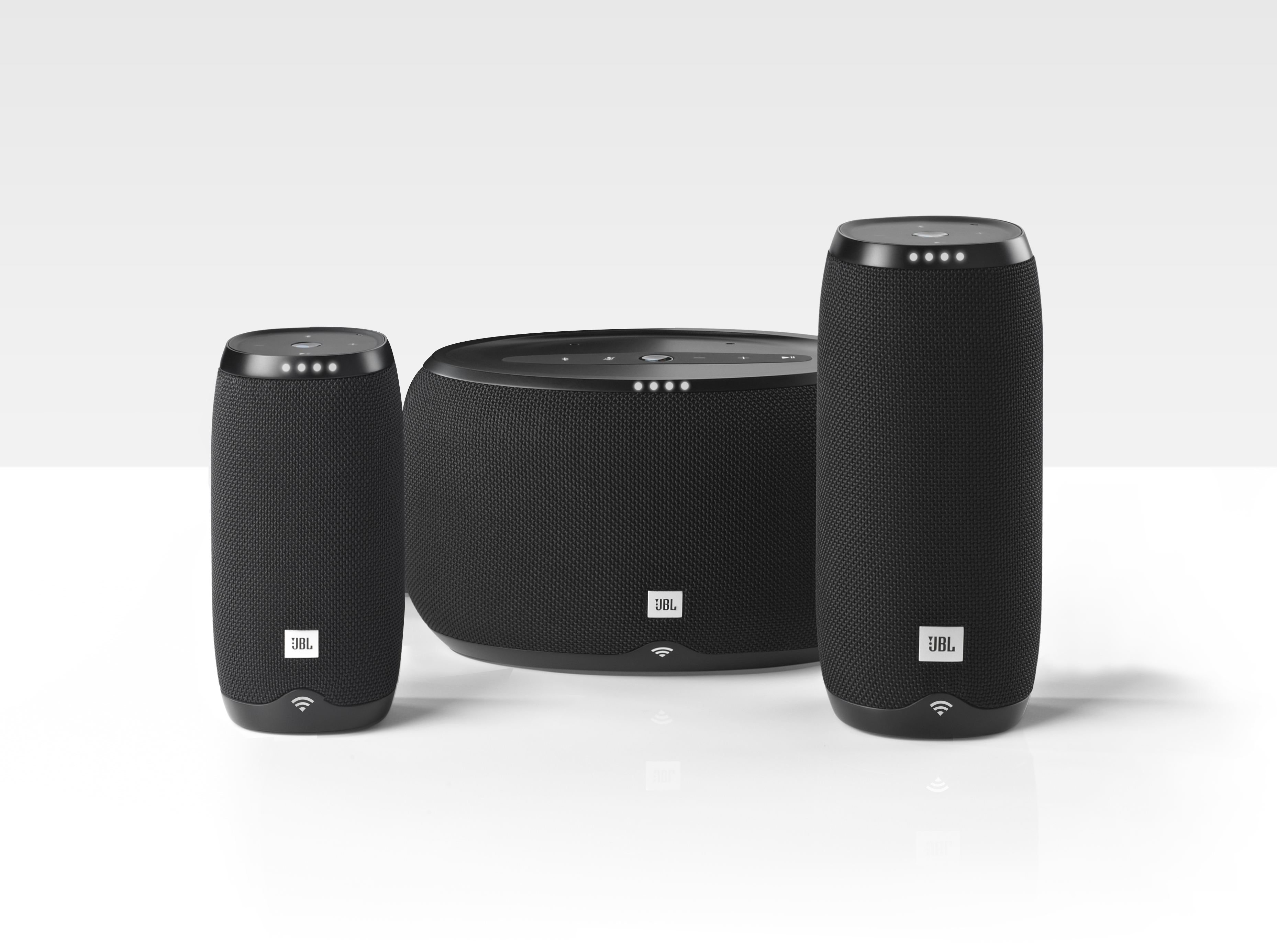 Harman, is hedging its bets here, launching speakers for each assistant under its different umbrella brands. There’s the Harman Kardon Allure, which sports Alexa and looks a bit like a coffee maker. That one runs $249 and features ambient lighting that glows in time with the music.