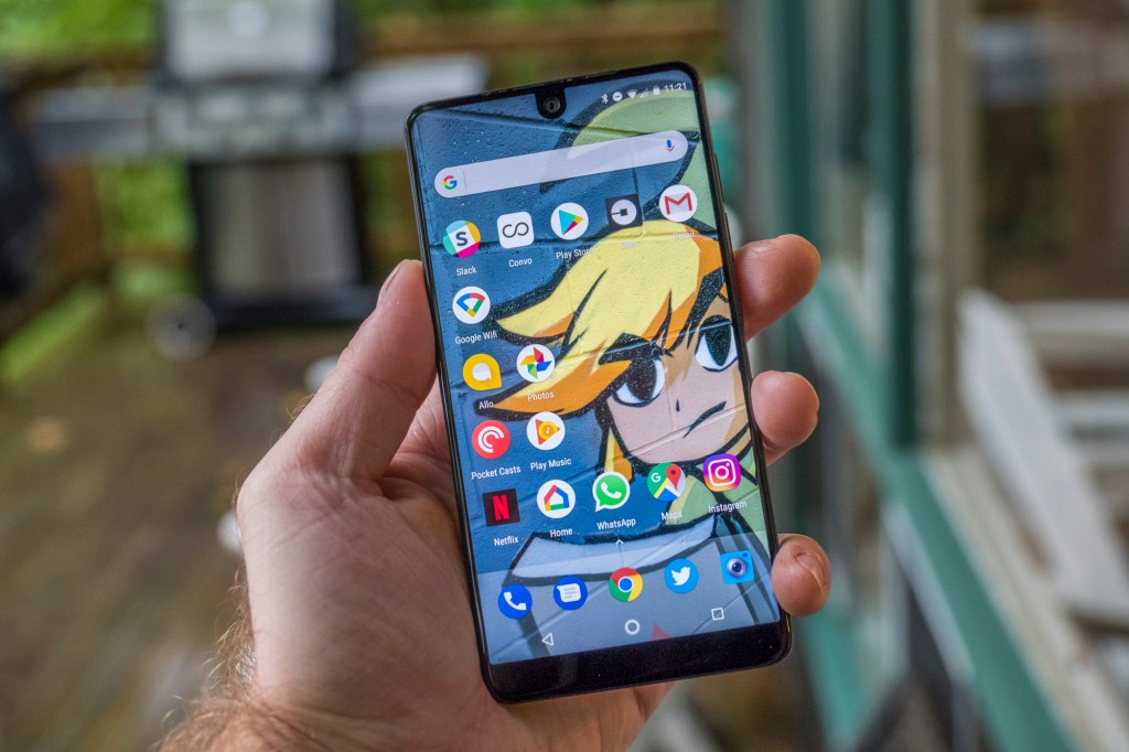 The Essential Phone manages that, and it’s hard to point to exactly what it is about the device that produces that result. The display, for sure, is a treat, with ideal color rendering to my eye (not too saturated, as can be the case with Samsung’s smartphone screens) and that edge-to-edge look. The hardware and build quality, with the shiny ceramic back and titanium frame, is also incredibly attractive.
