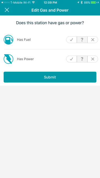 As it did for Hurricane Harvey, the app has activated its fuel availability tracker, which displays the stations lacking power and/or fuel, as sourced from its user base. When you encounter a station that’s out, you can quickly note this in the app to help others. In turn, you can use this crowdsourced information yourself to locate gas stations that have fuel availability.