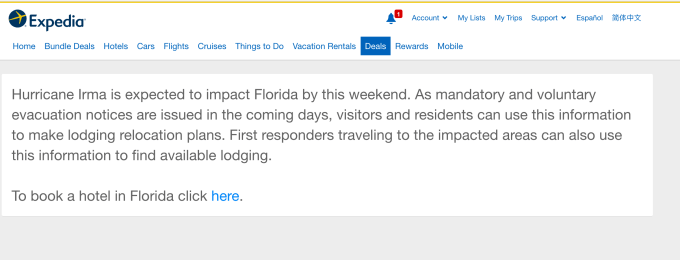 “If you need a hotel, go to Expedia.com/florida,” said Scott. “Expedia is working on hotel occupancy in real-time.”