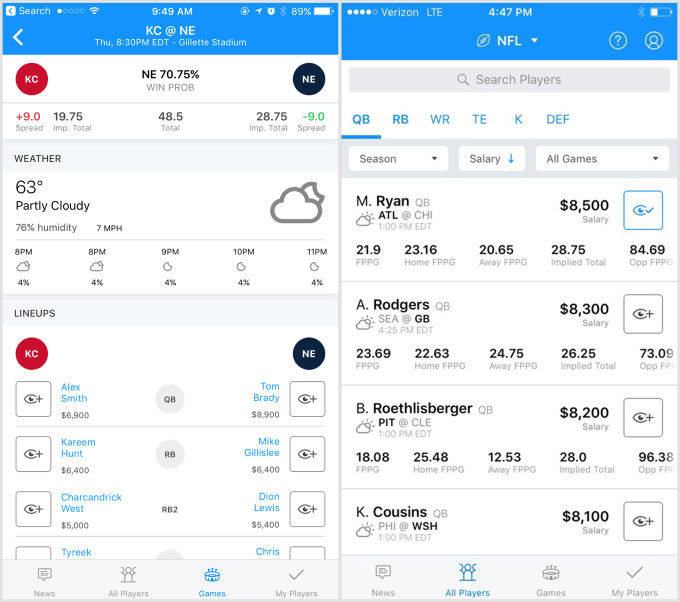 If you’ve ever played daily fantasy sports you’re familiar with the standard workflow – you browse 5 or 6 sites to research players, switch over to the FanDuel or DraftKings app to pick your lineup, then go right back to switching between those sites to make sure nothing changes before kickoff.