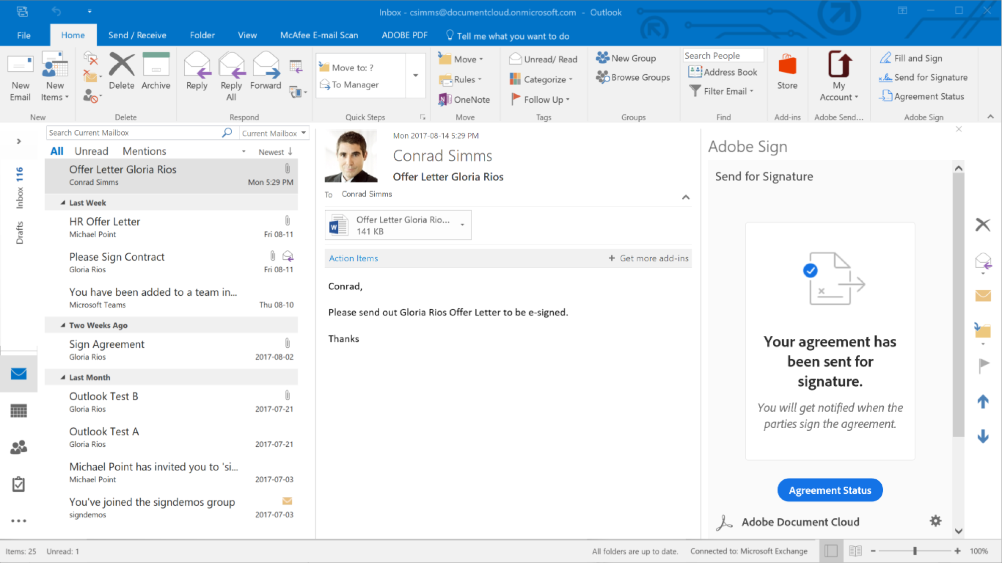 Microsoft and Adobe obviously share a huge number of customers already, while their product portfolio only overlaps in a few areas. That makes for an easy partnership, though it comes as a bit of a surprise that Microsoft wouldn’t want to build its own e-signature solution. I asked Microsoft’s corporate VP for Office 365 about this. “As a company, we always wanted a very strong partner ecosystem. We can’t do it all,” he told me. “What’s best for our company is to have a strong partner ecosystem. We do what each does best.”