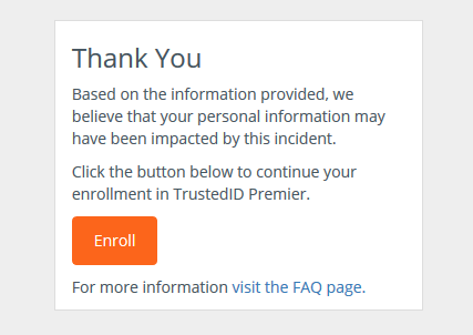 The company added the following to its FAQ for the TrustedID Premier program it is offering to those affected by the breach: