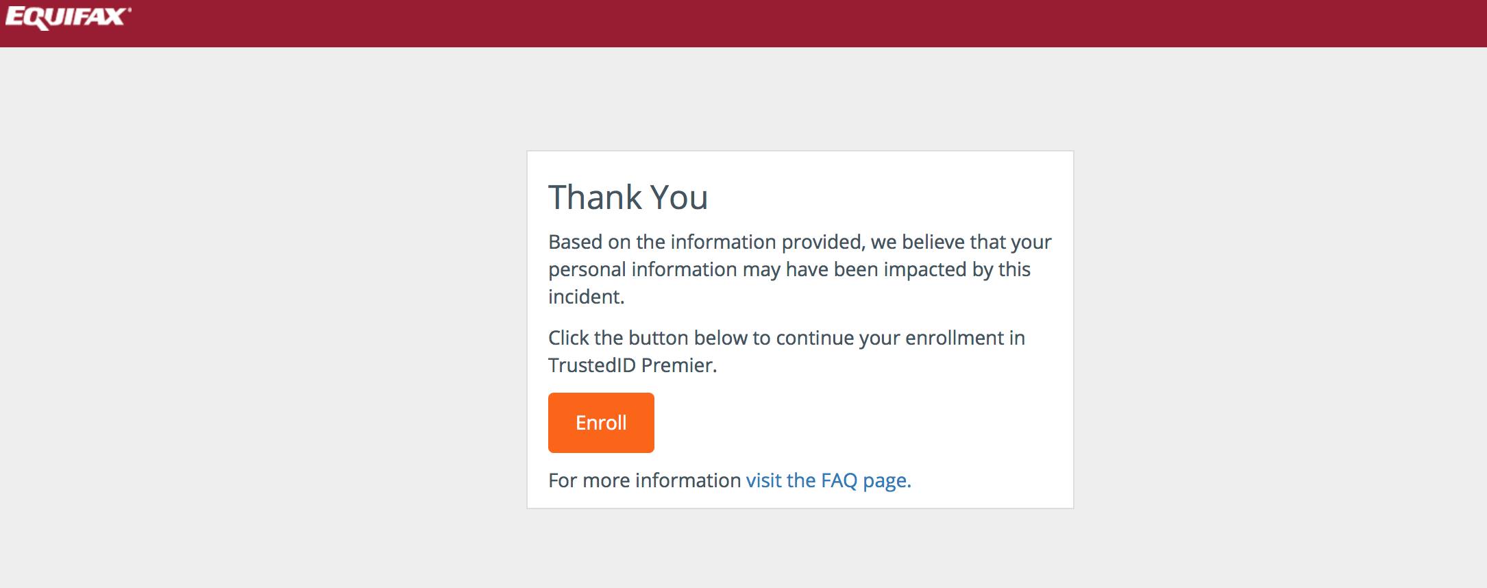I was then encouraged on the next line to continue my enrollment in TrustedID Premier. I was not aware I was enrolling in anything simply by giving my information. I had been instructed to add my last name and the last six digits of my Social Security number only to find out if I’d been impacted.
