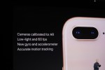 The camera sensor and processor are brand new. It works better in low light condition, and has some noise reduction technology. The two sensors on the back of the iPhone 8 Plus are f1.8 and f2.8 apertures — it is brighter than the iPhone 7 Plus. There are new color filters too, which should make colors pop more, according to SVP of Worldwide Marketing Phil Schiller.