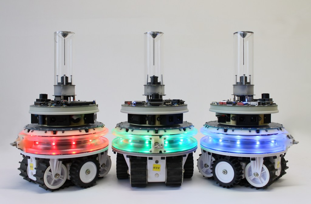 Not if we don’t let them! But I digress. The researchers, a multinational team from Lausanne, Lisbon and Brussels (led by Marco Dorigo of the latter), point out that this amazing potential is, at present, unattained. Why? Because the swarmbots we’ve seen tend to outsource their intelligence to a higher power like a computer watching them from above. They’re more like remote limbs than independent bots.