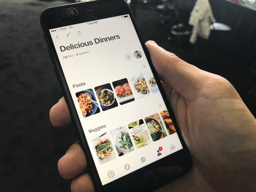On Silbermann’s own Pinterest account, he says he’s using Sections for his recipe collection, where he’s divided his board into different categories of recipes like salads, pastas, soups, etc.