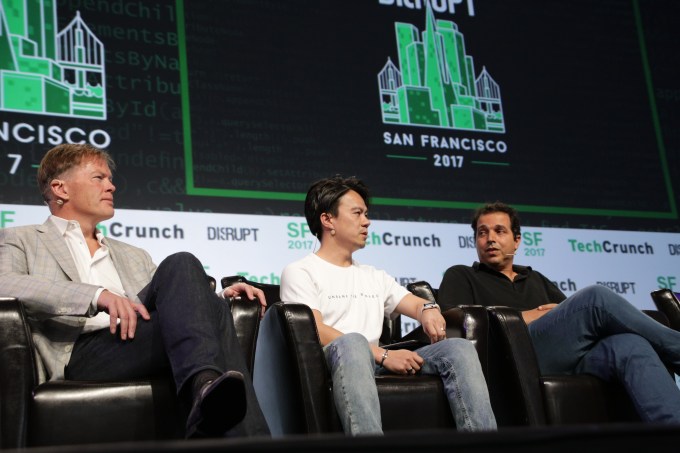 Morehead alongside Jun Hasegawa (OmiseGO) and Eyal Hertzog (Bancor Protocol) at TechCrunch Disrupt SF 2017