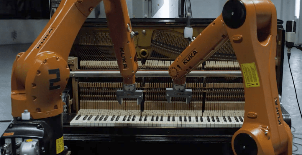 Robots are stealing jobs, the narrative says, and, according to this video, robots are stealing the arts too. The video shows several industrial robotic arms playing the piano, guitar, drums and a keyboard. Through some stellar music production, it sounds amazing too.