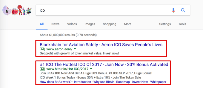 The early days of ICOs are even more speculative than the dot-com bubble, and Google ads clearly aren’t your friend.