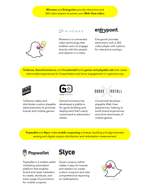 Snap wants its ads to open to something interesting rather than a boring mobile website. Today Snap announced 14 new ad Creative Partners that will help build custom games, interactive videos, gyroscope-powered epxeriences, lead generation campaigns, and pre-loaded Instant Apps as destinations for Snapchat ads. They’ll also help connect advertisers to influencers, despite Snapchat historically distancing itself from social stars.
