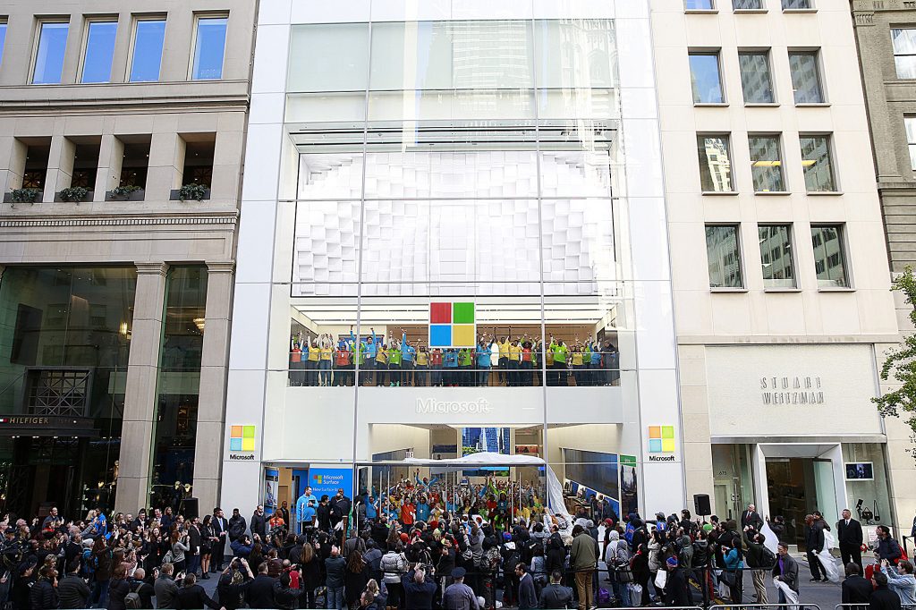 There are currently 75 Microsoft Stores globally, with two flagships, in New York (pictured above, also very close to Apple’s “cube” store) and Sydney.