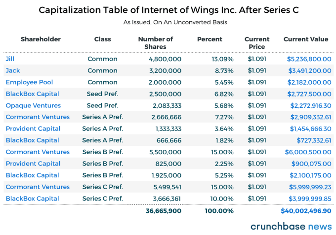 And here’s the company’s share structure — presented on an as-converted basis — after the Series C round is complete: