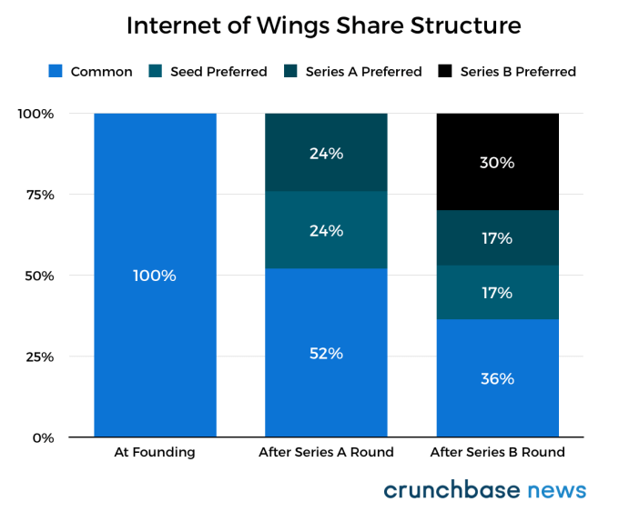 But this is just the investment for this Series C round. Prior investors had antidilution clauses written into their investment agreements with the Internet of Wings. So let’s see how those terms affect the conversion price of extant Series B shares. Not sure what conversion price means? Fret not, because we’ll explain.