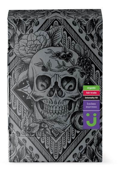 For example, the bag of coffee pictured here (see above) is called “badass espresso” and looks like it’s covered in a big tattoo.