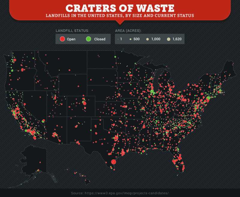 Today we consume more than twice as much as our relatives did only 50 years ago. In the US, this means generating upwards of 500 billion pounds of garbage every year that’s trucked to one of our 10,000 landfills. This accelerated consumption is exhausting global ecosystems, depleting 30% of global resources and nearly 60% of animal populations since the 1970s.