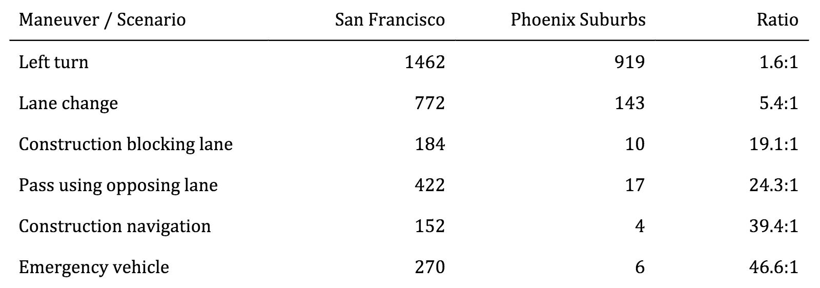 “In more suburban areas like Scottsdale, which is a suburb of Phoenix, we actually have data so we can compare the two,” Vogt said. Hey added that in the city (of SF specifically), tricky maneuvers like passing vehicles by crossing over into opposing lane of traffic actually happen quite frequently, as opposed to in suburbs.