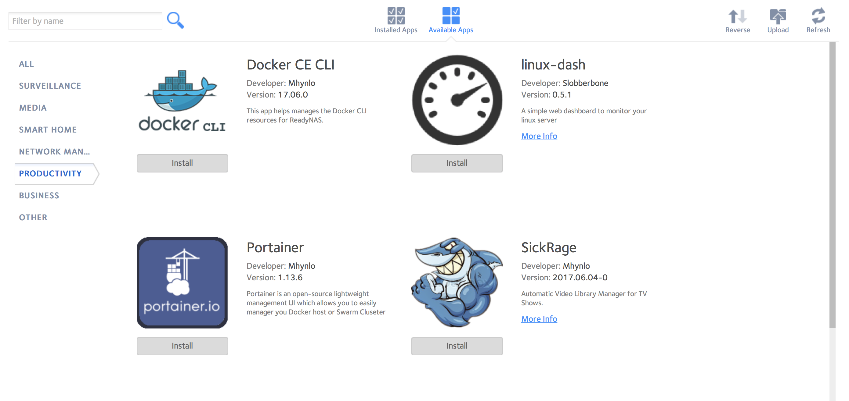 For example, you can install Drupal, an HTML5 based SSH terminal, and a Docker management tool right from the main admin screen. Many of the tools are fairly functional and aimed mostly at programmers who want to simulate remote storage conditions in their non-production code.