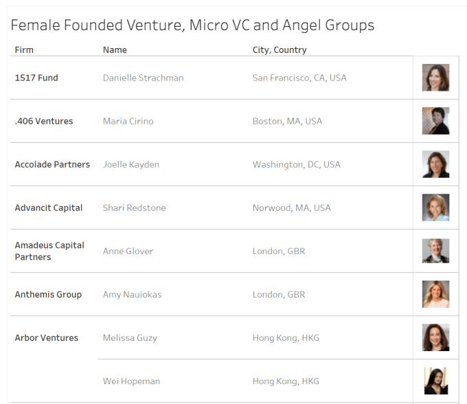 The charts below rank the who’s who of investing in female founders by percentage and by round. By our definition, we count any company that lists at least one female as a co-founder as female-founded.