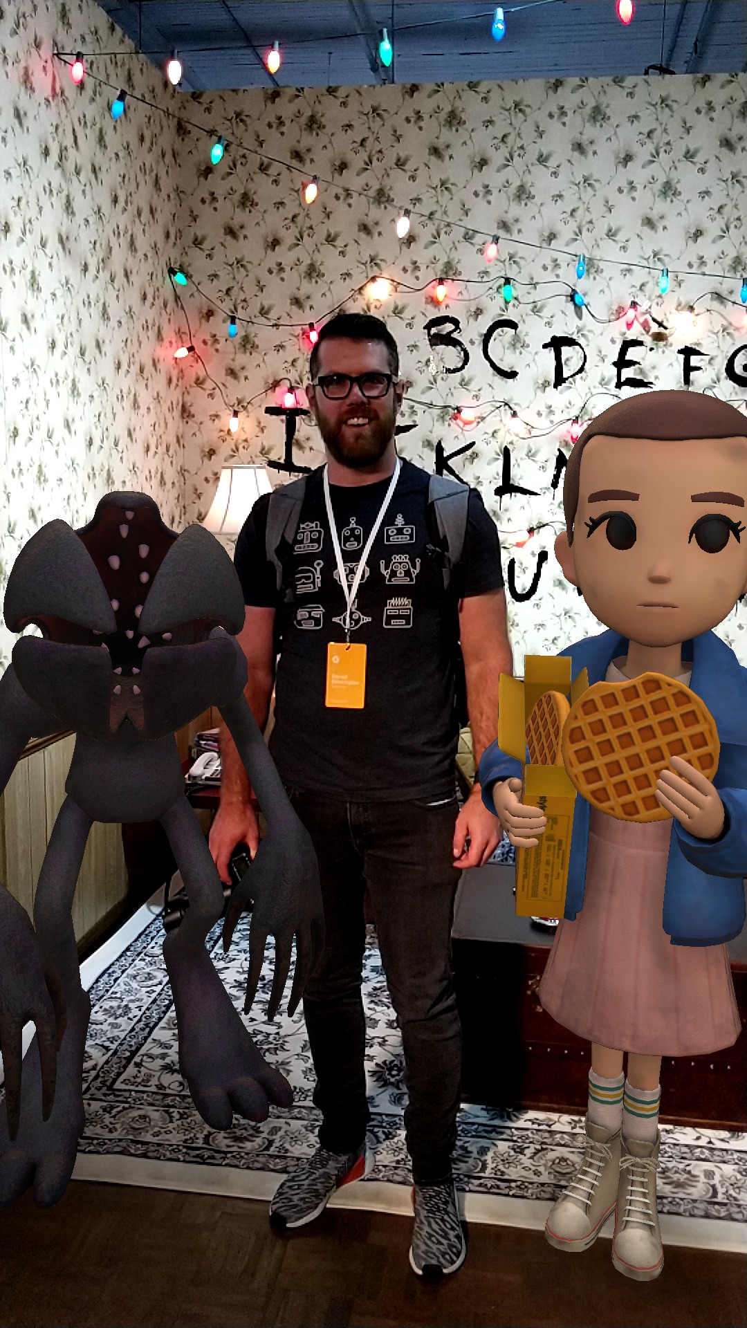 Stickers are animated, and can interact with each other. I took a picture with the Demogorgon and with Eleven, and I also tested out positioning the stickers and walking around them. They really seemed to stick in place well, and actually worked in person better than the shaky on stage demo would’ve led me to believe.