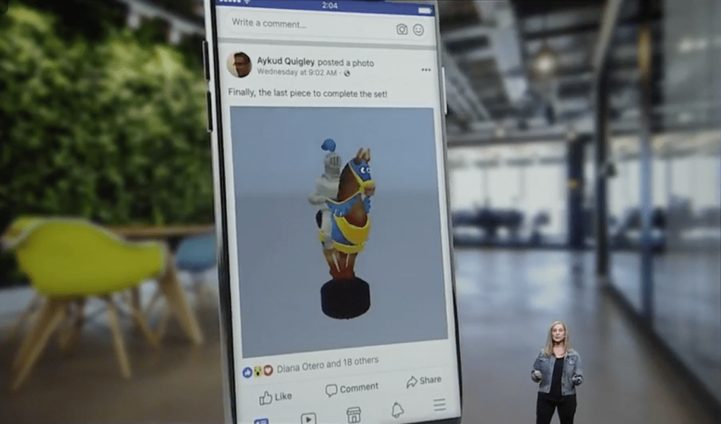 Facebook actually first allowed 3D objects to be interacted with in the feed via 3D embeds from Sketchfab back in 2015. But now Facebook has built a standardized 3D format on top of which it can build more 3D creation tools.