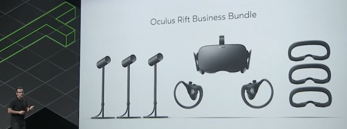 The $900 Oculus for Business bundles will come with an Oculus Rift, remote, Touch controllers, three sensors for creating room-scale VR, plus extra face pads so businesses can accommodate high volumes of different users.