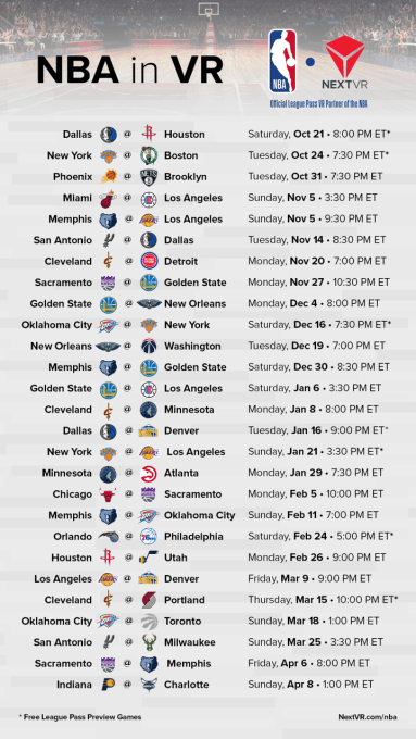 Last year the NBA launched a program where they streamed one regular-season game in virtual reality each week, all season long. Today they announced that they’re doing it again, starting with a free preview on October 21st when the Houston Rockets host the Dallas Mavericks.