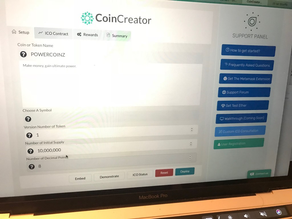 The creator asks for a few basic bits if data, including the name of your coin and the total issued. Then you create a simple contract that controls the flow and usage of these tokens. Cohen claims the product is compliant with current regulations as long as you connect the token to some sort of utility and avoid selling equity.