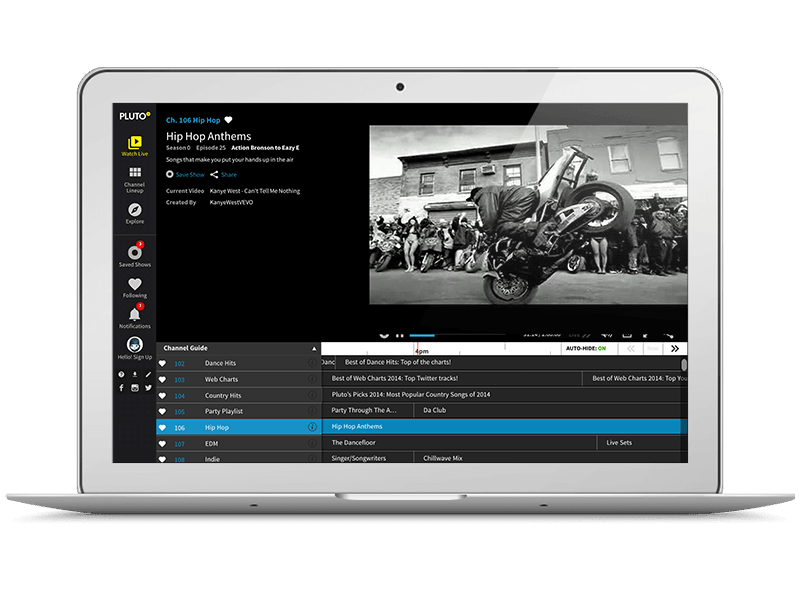 Pluto TV is available online, on mobile devices, and on media players and other living room devices including Samsung Smart TVs, Roku, Apple TV, and game consoles like Playstation and Xbox. Its service reaches 6 million active viewers per month, and generates review through advertising.